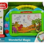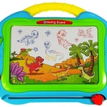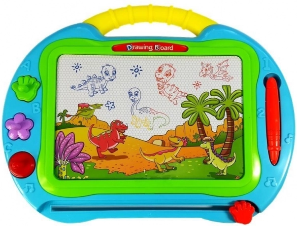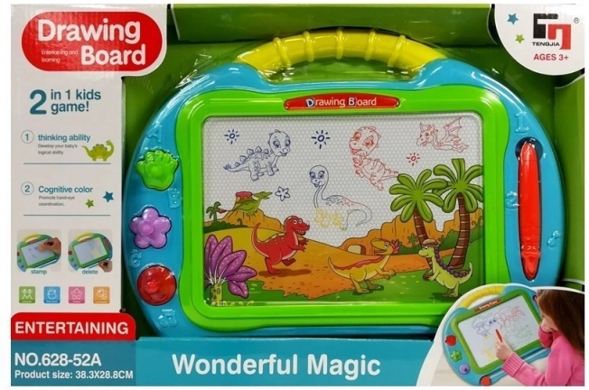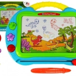 Cette grande ardoise magnétique permet aux enfants de dessiner et d’écrire encore et encore, sans désordre et sans papier. Sous la surface de l’écran se trouvent des limaille de fer qui, au contact du stylo magnétique, se rassemblent pour former des traces visibles. Les tampons en forme de rond, de patte et de fleur ajoutent des détails originaux aux dessins et aident à développer l’imagination.
