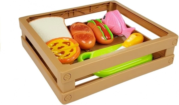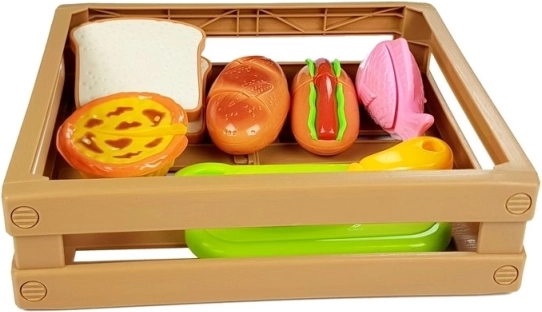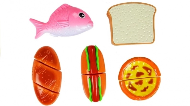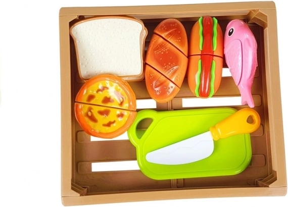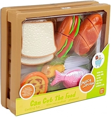 Découvrez le monde amusant de la cuisine avec ce set alimentaire pour enfants, où chaque pièce est tenue par un scratch. Les enfants peuvent préparer un hot-dog, servir du poisson, trancher du pain ou « cuire » un cupcake. Le couteau en plastique sécurisé et la planche permettent une découpe réaliste mais totalement sûre.