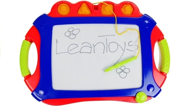 .L’ardoise possède un grand écran qui permet de créer des images multicolores, incroyablement originales, faciles à effacer. Sous la surface de l’écran se trouvent des limailles de fer qui, après un dessin réalisé avec le stylet spécial fourni, forment le motif créé par l’enfant. Les étiquettes fournies facilitent le jeu – le motif peut se refléter sur l’écran et l’enfant le décorera selon son imagination.