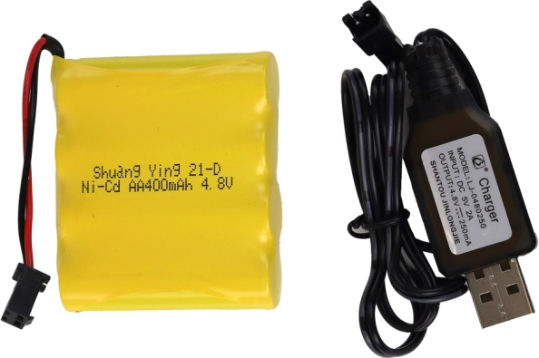L'autobus est alimenté par une batterie 4,8V 400mAh, incluse dans l'emballage. La télécommande nécessite 2 piles 1.5V AA, non incluses.