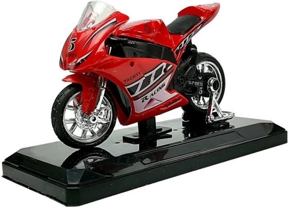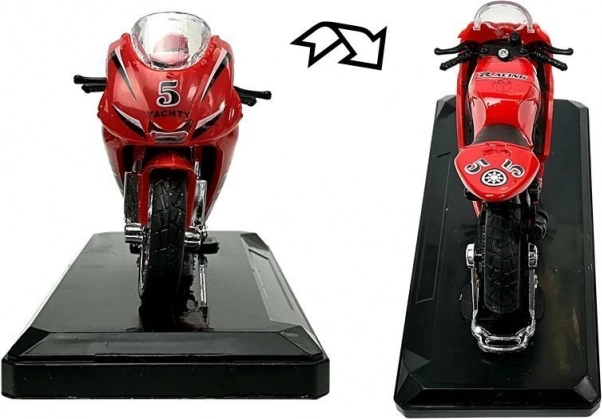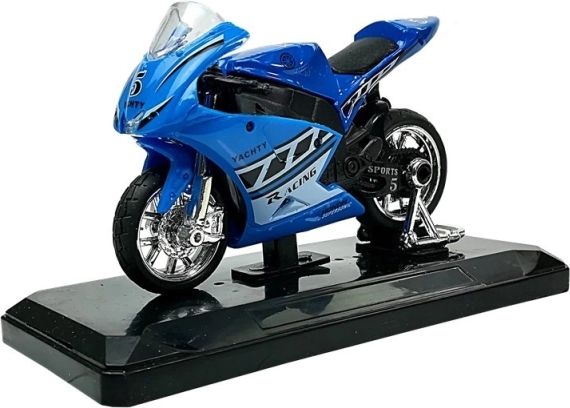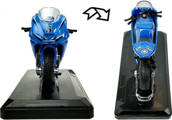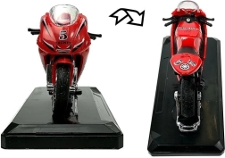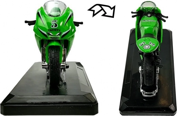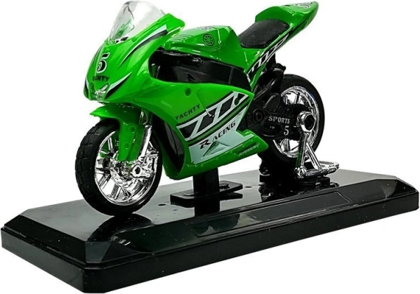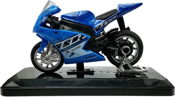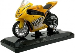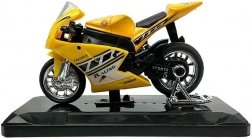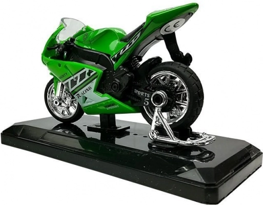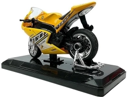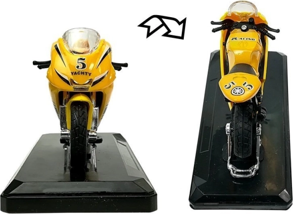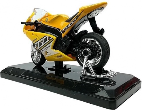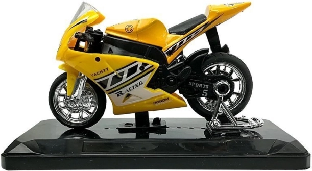 Un modèle stylé de moto de sport à l’échelle 1:18 qui ravira petits et grands collectionneurs. Il offre des effets sonores en appuyant sur la partie arrière, un guidon orientable, un mécanisme à inertie pour avancer et un socle amovible pour l’exposition. Disponible en 4 couleurs – jaune, rouge, vert et bleu.