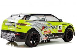 Carrosserie aérodynamique et légère avec décals sportifs verts, elle ressemble à une véritable voiture de course et impressionne en action.