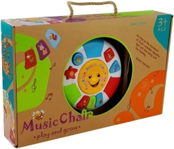 Le grand soleil central lit des rires et des percussions, tandis que le mini piano avec animaux encourage la découverte de la musique.