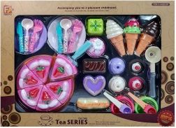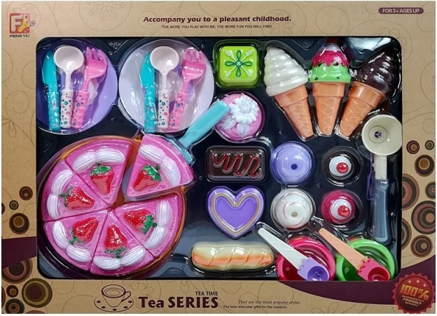 Les enfants peuvent également s’amuser avec d’autres douceurs, comme des glaces de différents types. Le coffret comprend des accessoires de table et de petits ustensiles aux couleurs fraîches, complétant le jeu pour une fête parfaite.