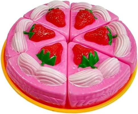 Ce mignon set de jeu apporte la joie d’une pâtisserie à la chambre des enfants. Offrez à vos petits leur propre fête avec des jouets attrayants qui favorisent un jeu créatif et amusant. L’élément principal de l’ensemble est un gâteau rose décoré de crème et de fraises. Grâce à la spatule en plastique fournie, il est possible de servir les parts du gâteau.