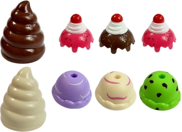 L’ensemble contient différents types de glaces et de friandises en plastique, ajoutant un niveau supplémentaire de divertissement au jeu.