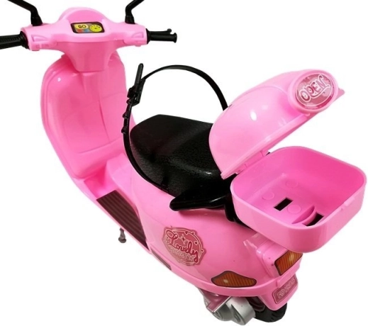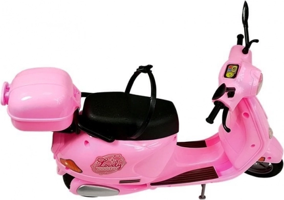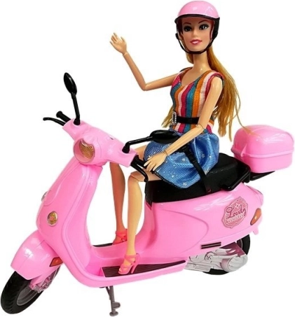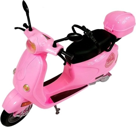 Le scooter rose est minutieusement détaillé avec des éléments réalistes, comme des rétroviseurs et un coffre de rangement. Grâce à sa construction solide et à ses béquilles, il reste stable pendant le jeu.