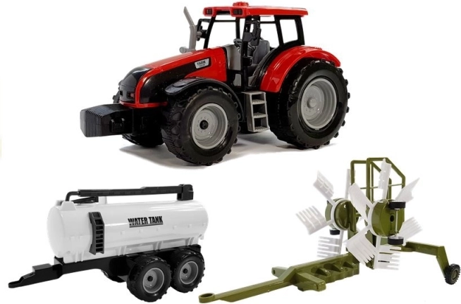 - Set 3 pièces : tracteur, andaineur rotatif, citerne à eau
