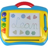 Ce jouet éducatif et amusant fonctionne grâce à des particules métalliques dissimulées sous la surface de l’écran. En dessinant avec le stylet magnétique, les particules se disposent en image, que vous effacez facilement avec la coulisse pour recommencer. Le grand tableau permet de dessiner en quatre couleurs, le petit tableau est en noir et blanc – une combinaison idéale pour créer à la maison comme en voyage.