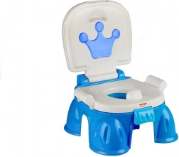 Le pot est conçu en pensant aux enfants, avec une palette de couleurs bleu-blanc et un motif de couronne, rendant l'apprentissage amusant.