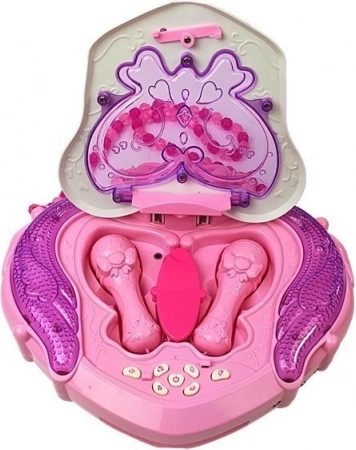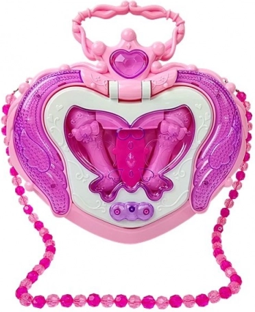 Un adorable haut-parleur en forme de cœur avec tiroir pour les petits objets. Les enfants peuvent y ranger perles et accessoires pour les avoir toujours à portée de main pendant le show.