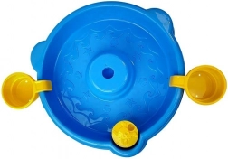 Bassin circulaire avec reliefs du monde marin et porte-gobelets, créant un cadre idéal pour attraper les poissons et jouer sensoriellement avec l’eau.
