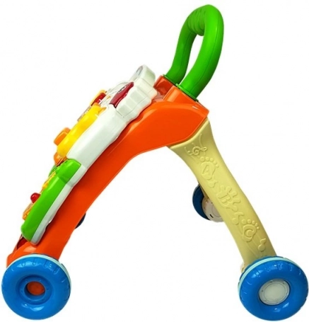 Un joyeux trotteur éducatif avec piano qui motive les enfants à faire leurs premiers pas tout en développant leurs sens et leur motricité. Il offre une structure stable, des roues silencieuses avec bandes en silicone, des effets lumineux et sonores et un riche panneau interactif avec des touches, des engrenages, des formes et un téléphone amovible.