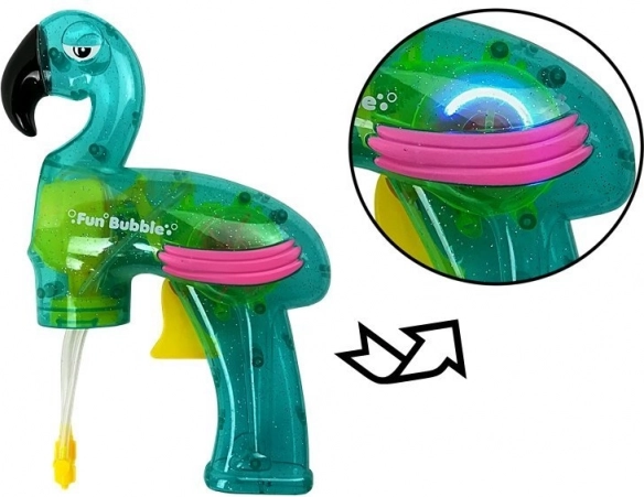 Ce pistolet à bulles combine un design unique en forme de flamant rose avec une construction astucieuse, permettant de créer rapidement des bulles. Il est facile à manier, même pour les plus petits enfants, grâce à un guide illustré au dos de l'emballage.