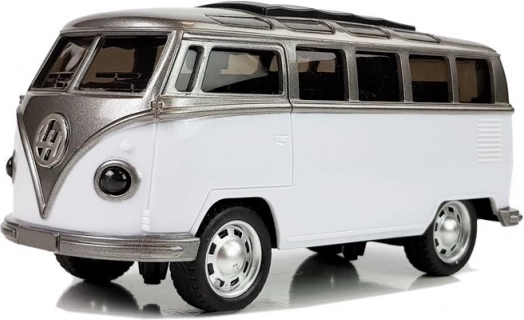 Découvrez le plaisir de jeu avec ce modèle de bus « ogórek » blanc, remarquable par sa fabrication soignée et ses détails réalistes. Grâce au mécanisme à inertie (pull-back), le bus avance tout seul après l’avoir tiré en arrière, tandis que les effets lumineux et sonores intensifient encore l’expérience de jeu.
