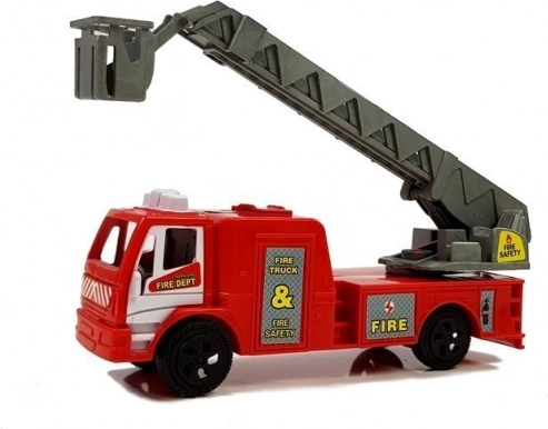 Un camion de pompiers détaillé avec une longue échelle pour soutenir le jeu lors des sauvetages en hauteur et de l’extinction des incendies dans divers scénarios.