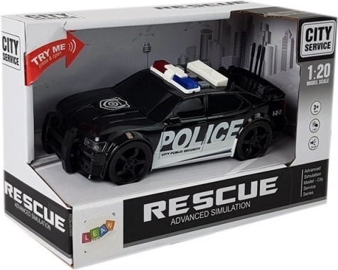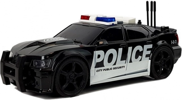 Voiture de police réaliste à l’échelle 1:20 avec effets lumineux et sonores, idéale pour chaque petit fan des unités d’intervention. Grâce au mécanisme à friction (remontage), il suffit d’appuyer la voiture, de la tirer en arrière et de la lâcher – elle part en avant. Sur le toit se trouvent 3 boutons pour différentes sirènes et des lumières rouge et bleues clignotantes. Les piles AG13/LR44 sont incluses et la construction sûre avec certification CE convient aux enfants à partir de 3 ans.