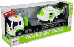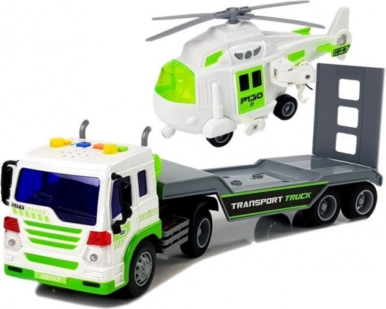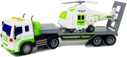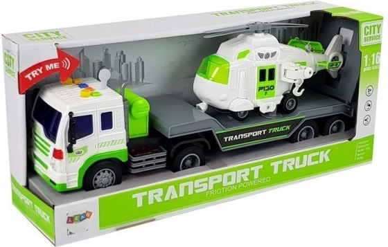 Ce camion de transport finement détaillé en blanc et vert dispose d’un long plateau pour charger confortablement l’hélicoptère ou d’autres véhicules. La rampe arrière basculante facilite la montée et la fixation sécurisée du chargement. Les effets lumineux et sonores assurent le divertissement – sur le toit de la cabine, vous trouverez 4 boutons pour le démarrage du moteur, le klaxon, le bruit de conduite et de marche arrière. Grâce au mécanisme à friction, il suffit de tirer la voiture en arrière puis de la relâcher.