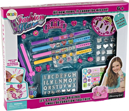 Découvrez un kit créatif ludique pour petites stylistes, grâce auquel les enfants fabriquent leurs propres bracelets et breloques selon leur imagination. La boîte contient des bandes en silicone pour bracelets, des lettres alphabétiques, des autocollants et formes décoratives ainsi que des chaînettes pour breloques. Cette activité développe la motricité fine, la créativité et apporte beaucoup de joie avec des bijoux originaux.