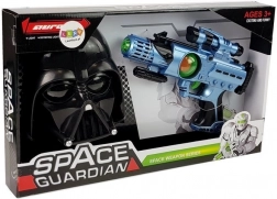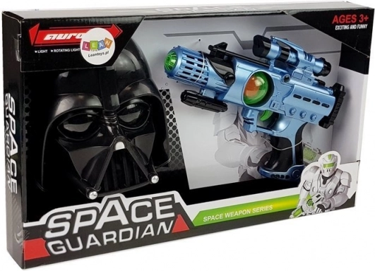 Dans cet ensemble incroyable, vous trouverez un pistolet bleu futuriste et un masque noir qui s'illumine grâce à des lumières bleues et rouges. Les enfants profiteront d'un jeu réaliste de guerriers cosmiques. Chaque élément est fabriqué en plastique de qualité, sûr et durable.