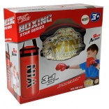 La victoire à l'entraînement ou lors d'un match amusant sera célébrée avec la ceinture de champion aux éléments dorés et aux pierres colorées. Des gants de boxe parfaitement ajustés sont également inclus.