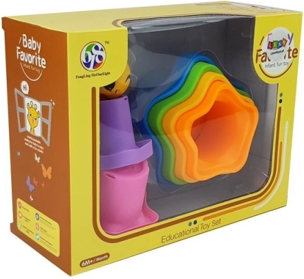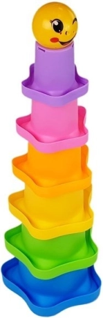 Chaque gobelet a une couleur différente et un motif d’étoile distinct. Ce jouet n’est pas seulement esthétique, il favorise aussi le développement de la motricité et des aptitudes motrices, l’entraînement de la préhension ainsi que la reconnaissance des couleurs et des formes. Empiler les gobelets aide à comprendre les relations entre des objets de tailles différentes.