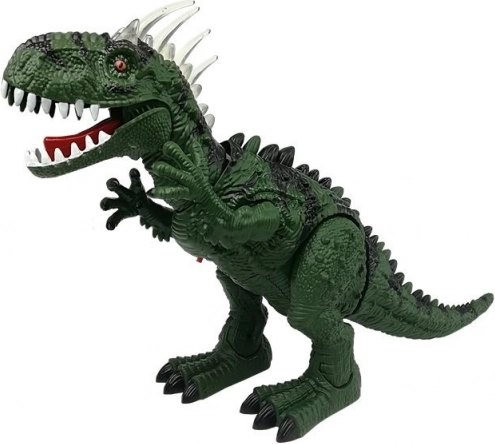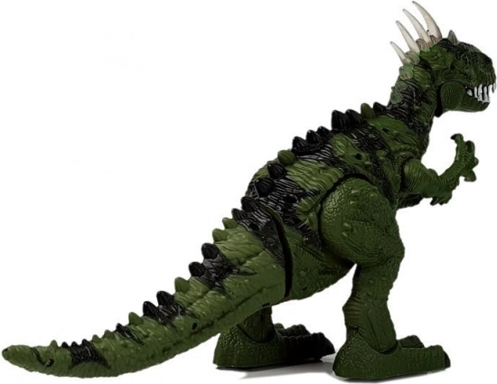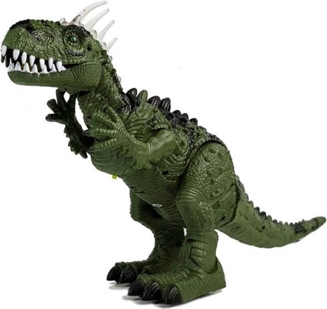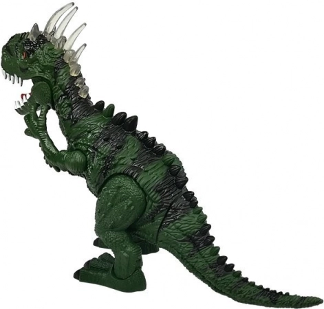 Le dinosaure avance de lui-même, tourne la tête, ouvre la gueule et rugit comme un véritable prédateur. Le rétroéclairage coloré des écailles sur la tête ajoute de la tension à chaque scène.
