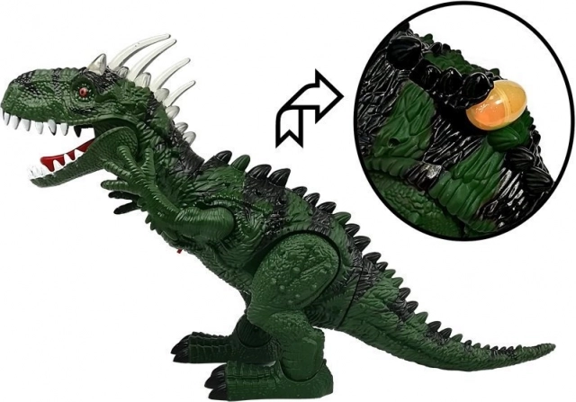 Son atout unique est la ponte d’œufs – insérez les œufs par l’ouverture sur le dos, et pendant la marche, le dinosaure les pond. Un autre effet wahou est apporté par le projecteur intégré dans la poitrine, qui projette l’image d’un véritable T-rex et insuffle une dose d’éducation et de fantaisie au jeu.