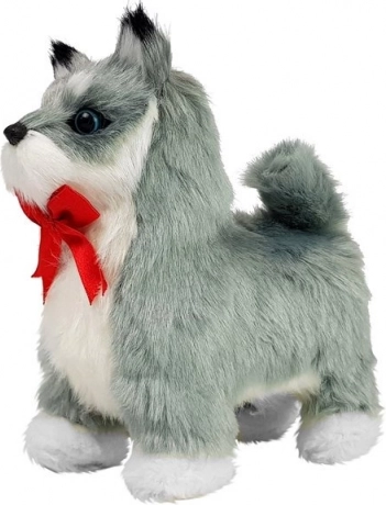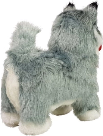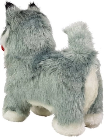 Le mignon chien husky interactif ravira chaque enfant. Au toucher, il aboie, bouge la tête et la queue, et en appuyant sur son flanc, il marche en avant avec une mélodie joyeuse. Sa fourrure gris-blanc toute douce, ses yeux bleus et son noeud rouge lui donnent beaucoup de charme. Idéal pour les enfants dès 3 ans, avec certification CE et conformité à la norme EN71.