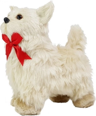 Ce petit chien interactif ressemble fidèlement à un véritable Chihuahua – il a une douce fourrure crème, de grands yeux sombres et un élégant ruban rouge. Il réagit aux caresses et aux touches : il aboie, bouge la tête et la queue, et en appuyant sur son flanc, il avance avec une mélodie joyeuse. Il est tout doux, sûr et prêt à devenir le meilleur ami de votre enfant.