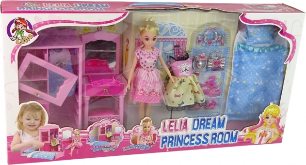 Ce set de chambre pour poupées, riche en détails, transformera toute chambre d’enfant en royaume rose. Les enfants adoreront le lit confortable avec sa couverture et son oreiller moelleux, la spacieuse armoire pour les tenues et la coiffeuse avec miroir pour les rituels de beauté quotidiens.