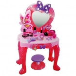 Nous vous présentons une magnifique coiffeuse pour enfant rose qui inspirera chaque petite princesse à des heures infinies de créativité et d’amusement. La coiffeuse est dotée d’un miroir en forme de cœur avec décoration de papillons et est livrée avec toute une gamme d’accessoires pour jouer à la maquilleuse.