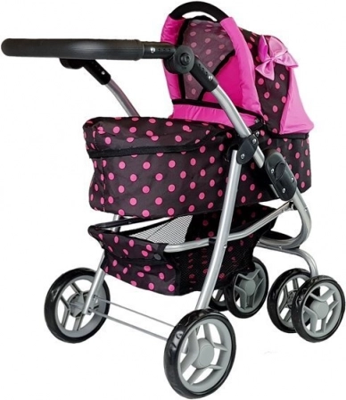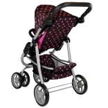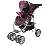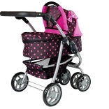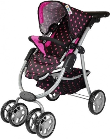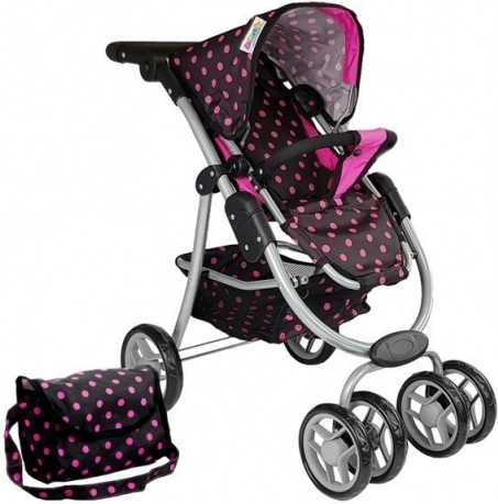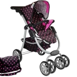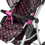 La poussette pour poupées allie jeu et apprentissage, favorisant ainsi le développement des comportements empathiques et responsables chez les enfants. Design élégant noir avec pois roses rappelant les véritables poussettes, incitant les jeux créatifs. Structure en tubes d'aluminium robustes et connecteurs en plastique garantissant durabilité et stabilité.