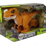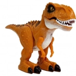 Le dinosaure, dans des tons bruns, avance grâce à la télécommande. Il dispose également d’effets sonores et lumineux. Lorsque sa mâchoire s’ouvre, il émet un rugissement et ses grands yeux s’illuminent en rouge.