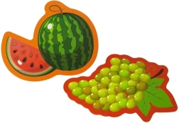Des illustrations claires de fraises, poires, kiwis, oranges et autres stimulent la perception visuelle et l’apprentissage des noms de fruits.
