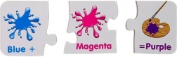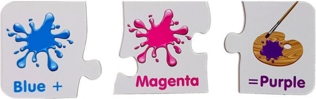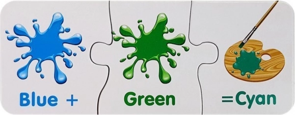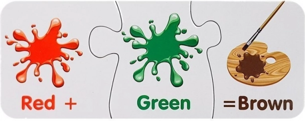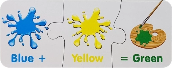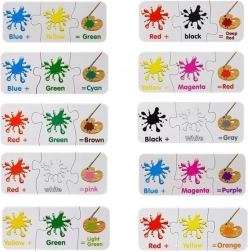 Chaque mini-puzzle montre deux couleurs et la teinte résultante. Les enfants comprennent rapidement les principes du mélange et mémorisent mieux les couleurs.