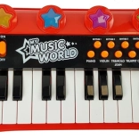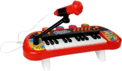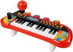 Un choix idéal pour les filles et les garçons qui veulent donner leur premier concert à la maison. Les touches au design rouge‑noir avec des motifs colorés stimulent la créativité, la perception auditive et le sens du rythme. Grâce au microphone fourni, l’enfant peut chanter tout en jouant, et l’entrée USB/MP3 permet de lancer ses chansons préférées – parfait pour le karaoké à la maison.
