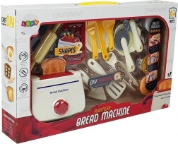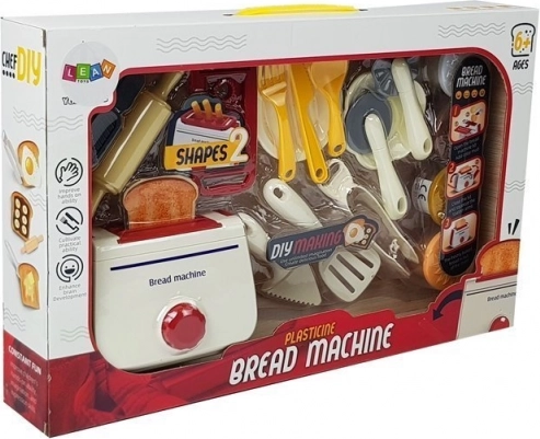 La boîte contient un grille-pain, des assiettes, des couverts, un rouleau et 4 pots de pâte à modeler de différentes couleurs. Jouet adapté aux enfants dès 3 ans, conforme CE et à la norme EN 71, présenté dans une boîte vitrine – prêt à offrir.