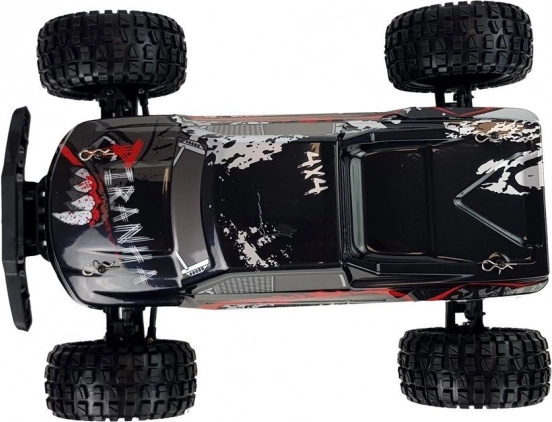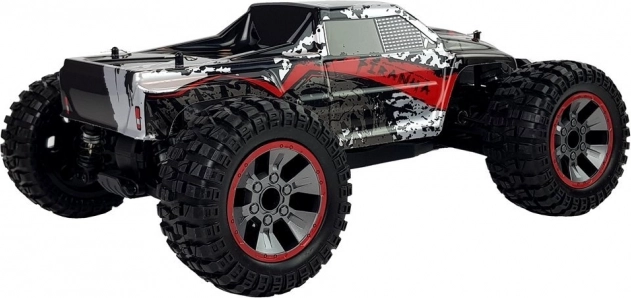 Le modèle est équipé d’un puissant moteur à balais 540, d’amortisseurs métalliques à huile et de pneus en caoutchouc résistants pour une traction fiable. La batterie rechargeable 7,4 V / 1700 mAh offre environ 18 minutes d’autonomie (selon l’utilisation) et se recharge via un chargeur USB.