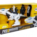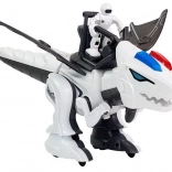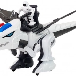 Le robot est fabriqué en plastique résistant dans une combinaison de couleurs blanc et noir avec des détails rouges et bleus. Son design comprend des parties mobiles, comme les ailes et les pattes, permettant des mouvements animés du dinosaure. Le tout est complété par une figurine de cavalier qui « conduit » le dinosaure.