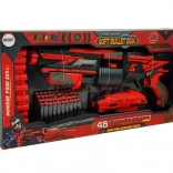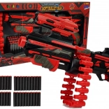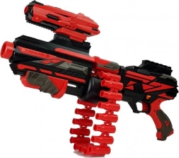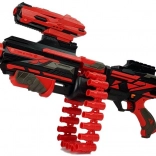 Cette carabine rouge et noire transforme chaque partie en un amusement mémorable. Grâce à son long chargeur, elle peut contenir jusqu’à 40 projectiles et permet des tirs rapides jusqu’à 45 mètres !