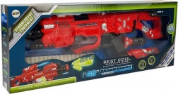 Cette arme est fabriquée en plastique sûr sans bords tranchants, sa sécurité est assurée par la certification CE et elle est conforme à la norme EN 71. L'arme a une portée allant jusqu'à 45 m et convient aux enfants à partir de 6 ans. Le kit comprend un support qui permet de tenir et de viser l'arme confortablement.