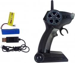 Deux moteurs indépendants et un double gouvernail garantissent une excellente maniabilité et une accélération vive. La batterie Li-ion intégrée 3,7 V / 650 mAh offre jusqu’à 20 minutes de jeu, la recharge prend environ 60 minutes. La télécommande pistolet ergonomique tient parfaitement en main et permet un contrôle précis en avant, en arrière et latéralement.