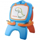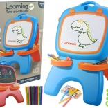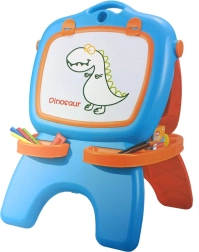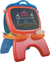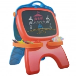 Tableau double face magnétique et à craie pour petits artistes et écoliers, avec une surface blanche effaçable à sec et une surface noire pour la craie. Le coffret comprend 12 feutres, 12 craies, des pochoirs de lettres et de formes, des tiroirs pratiques pour les accessoires et un crochet pour fixer le papier. Favorise la créativité, la motricité fine et la coordination œil-main.