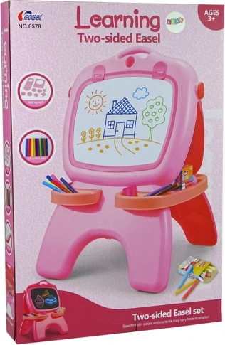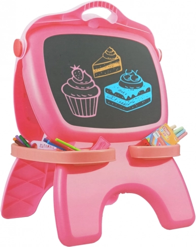 Découvrez un tableau double face magnétique et ardoise qui stimule la créativité et l’apprentissage. La face blanche est prévue pour les feutres effaçables à sec, la face noire pour la craie. Sont inclus 12 feutres et 12 craies, des pochoirs de formes et de lettres, un feutre lumineux, un tiroir pratique pour accessoires et un crochet pour papier. Dimensions compactes 64×44×30 cm. Convient à partir de 3 ans, conforme EN71 et CE.