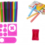 Tableau, 12 feutres, 12 craies, pochoir de formes, pochoir de lettres, feutre lumineux