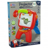 Le projecteur supérieur projette des animaux et des personnages. Les enfants peuvent les décalquer et s’entraîner aux formes, aux lettres et à la motricité fine.