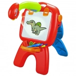 Le chevalet de dessin double face est un compagnon bien pensé pour les petits artistes. Les enfants peuvent écrire et dessiner sur la surface blanche effaçable ou créer à la craie sur le tableau noir. Le projecteur supérieur projette des motifs faciles à décalquer – idéal pour les premiers pas en dessin, l’entraînement des formes et des lettres.