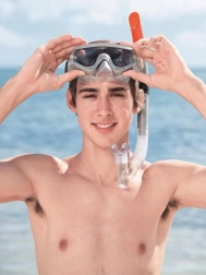 Le masque en verre trempé résiste aux rayures et à la pression, tandis que la jupe souple s’adapte étroitement au visage pour empêcher toute infiltration d’eau.