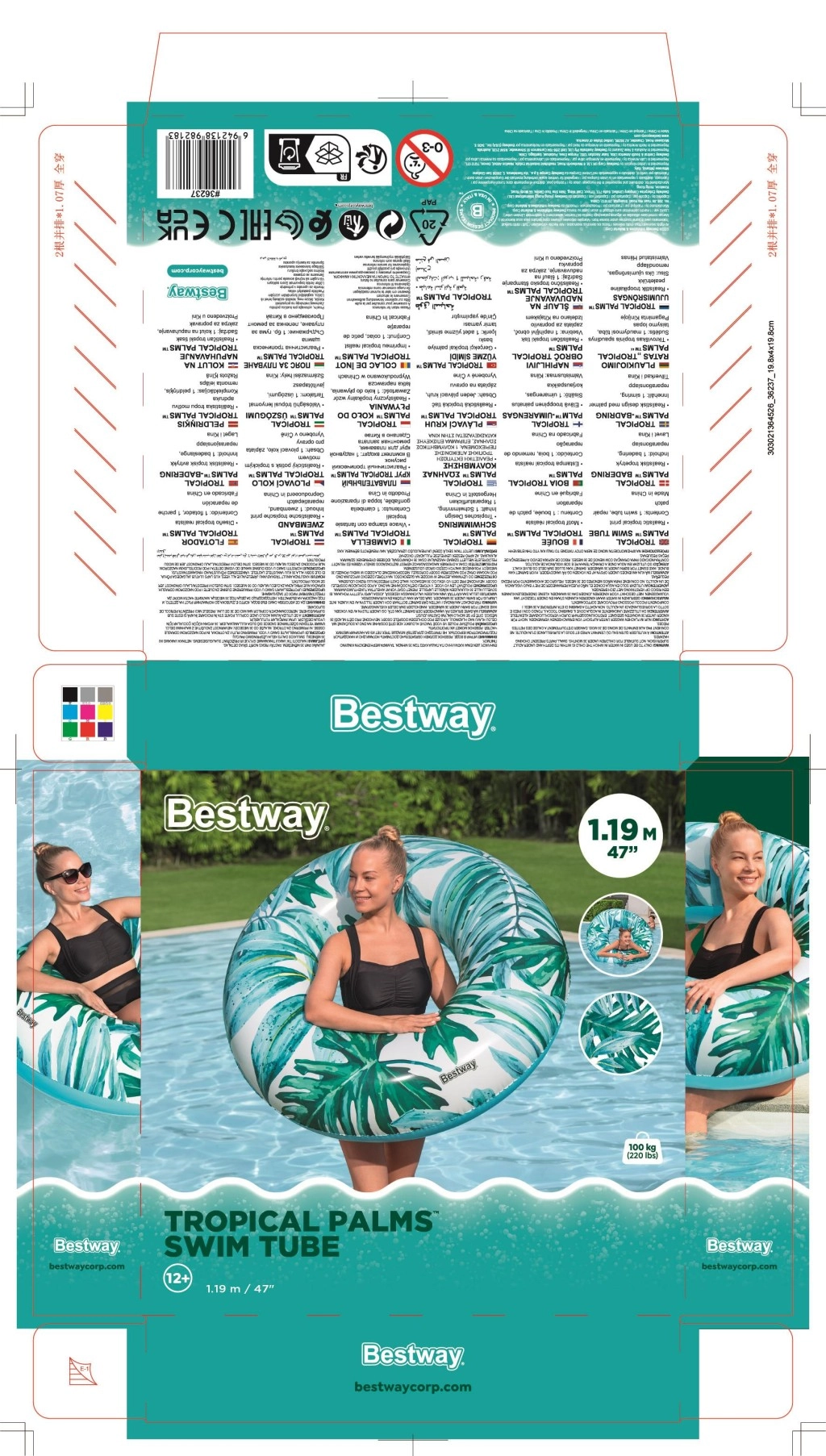 La grande bouée BESTWAY Tropical Palms apporte confort, stabilité et style à chaque moment dans l’eau. Grâce au matériau PVC de qualité, la bouée est durable et prête pour des utilisations répétées tout au long de l’été. L’imprimé tropical à feuilles et fleurs ajoute une touche de peps, que vous vous prélassiez à la surface ou que vous jouiez avec les enfants.